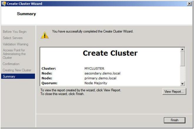 Congratulation, if you have done everything right you will see the following Summary page. Notice the yellow exclamation point; obviously something is not perfect. Click on View Report to find out what the problem may be.