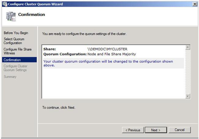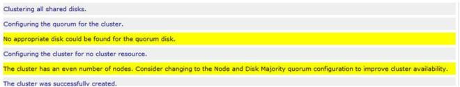 Creating your cluster and configuring the quorum: Node and File Share Majority