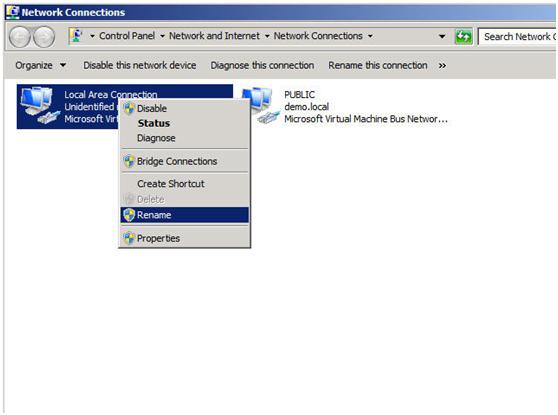 Next you will want to have a look at your network connections. It is best if you rename the connections on each of your servers to reflect the network that they represent. This will make things easier to remember later.