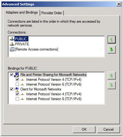 You will also want to go into the Advanced Settings of your Network Connections (hit Alt to see Advanced Settings menu) of each server and make sure the Public network is first in the list.