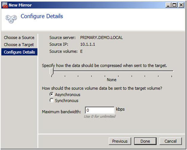 - Compression Level – If you have a 100 Mbps or faster network for replication, leave it set to none. If you have a WAN that is less that 100 Mbps, you may benefit from enabling compression. Settings somewhere in the middle tend to give you the best performance of compression vs. CPU overhead associated with enabling compression.