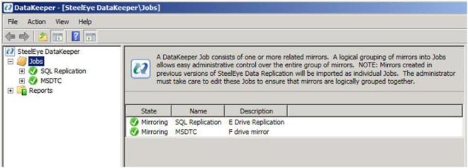 Now if you take a look at your DataKeeper GUI, it will look similar to the following.
