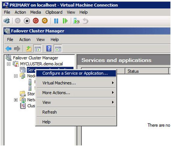 You will start by opening the Failover Cluster Manager GUI and then choose “Configure a Service or Application”.