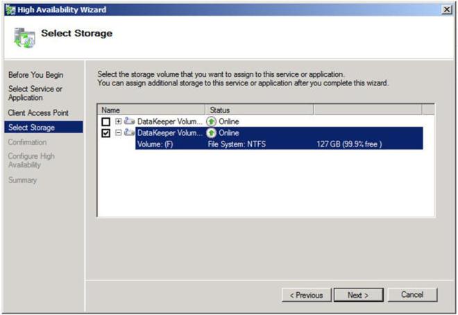 Add-ClusterResource -Name “DataKeeper Volume E” -ResourceType “DataKeeper Volume” -Group “Available Storage”