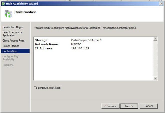 IMPORTANT NOTE – There is a hotfix that is required in order to support DTC with 3rd party disk resources. Please see the following KB article and apply the howfix to all cluster nodes. http://support.microsoft.com/kb/978476