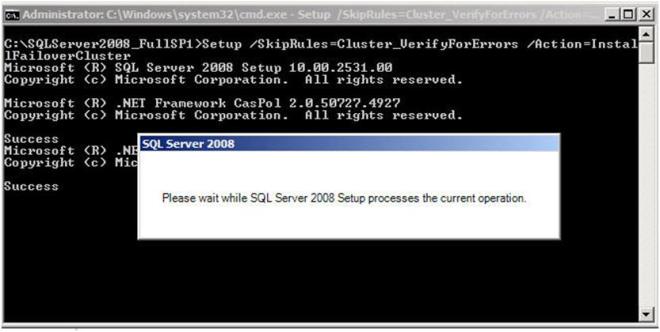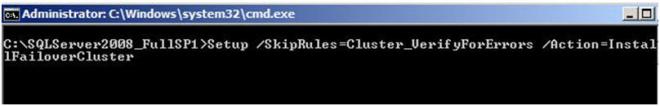 Setup /SkipRules=Cluster_VerifyForErrors /Action=InstallFailoverCluster