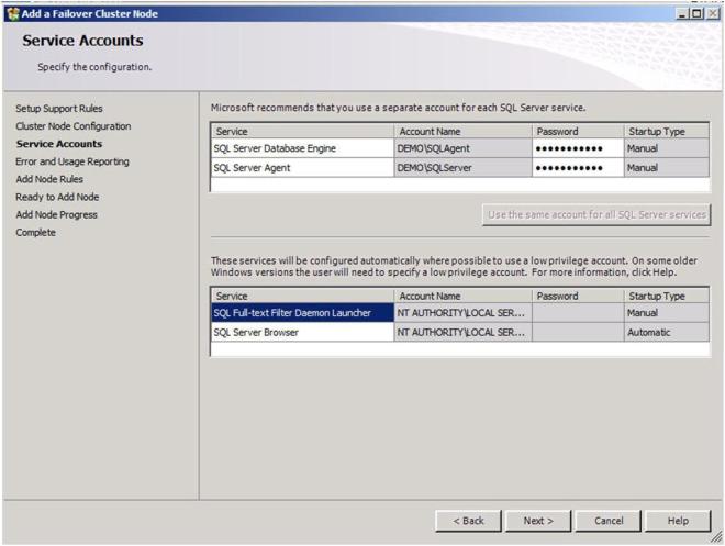 It is recommended that you have separate domain accounts for SQLServer and SQLAgent. You can take the time to create these accounts now if you have not already done so. These accounts require no special permissions, as this install process will give them the permissions that they require.