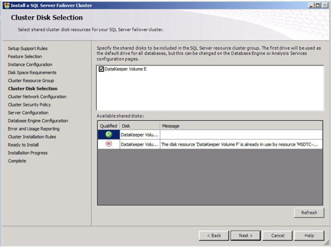 Choose the volume where you will store the data for the MSDTC resource. In our case we are choosing the replicated F drive.