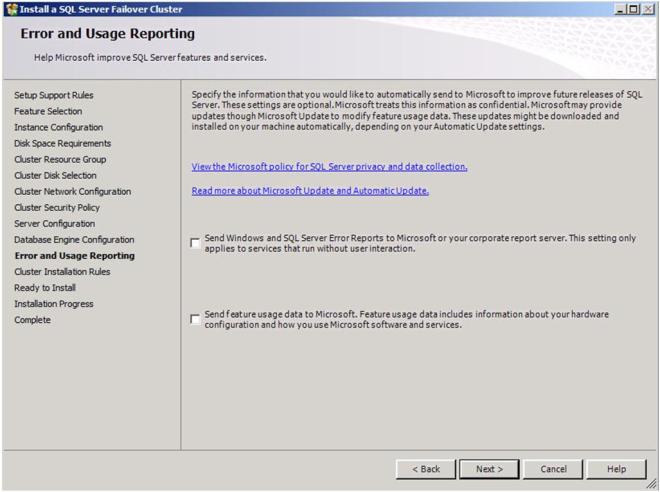Now that you have your SQL Server 2008 SP1 installation media ready to go, you are ready to install your first SQL node. There is one major “gotcha” when it comes to installing SQL on a multi-node cluster. In order for you to install SQL on a multi-node cluster, you must first pass the Windows Server 2008 Failover Cluster validate process. Unfortunately, a multi-site cluster is exempt from passing the storage related test, so you never are able to actually “pass” the validation as far as SQL is concerned. It took a little investigation on my part, but what I have come to find is that there is a command line parameter that allows you to skip the validation test on the SQL 2008 installation. Here is the command line.