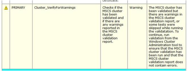 Figure 18 – The warning is expected in a multi-site or non-shared storage cluster