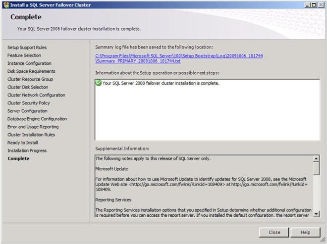 Congratulations, you have successfully installed the first node of your multi-site SQL Server Cluster. Now we will install the second node of the cluster.
