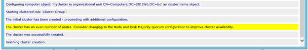 You now have a basic 2-node cluster and are ready to move on to the next step…creating your cluster resources. I will be publishing a series of articles on how to cluster different resources, starting with SQL 2012 in my next post.