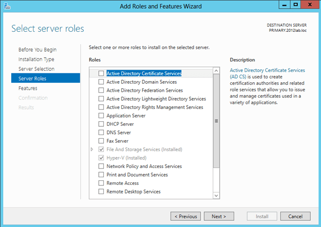 - Skip over the Server Roles page