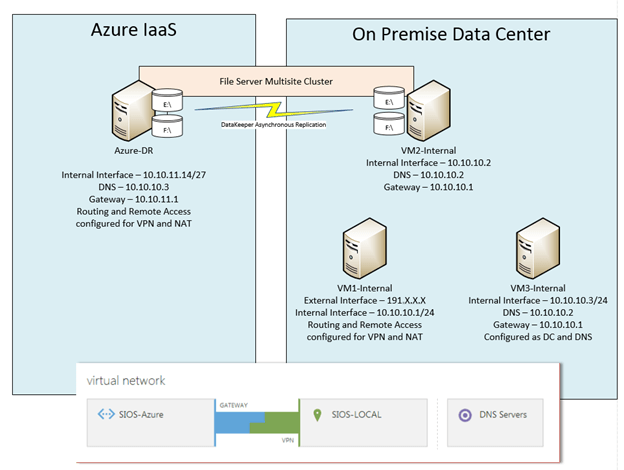 A traditional failover cluster requires a shared storage device, like a SAN. The Azure IaaS cloud does not offer a storage solution that is capable of being used as a cluster disk, so we will use the 3rd party data replication solution called DataKeeper Cluster Edition which will allow us to create a replicate volume resource which can be used in place of a shared disk. A 14-day trial license is generally available for testing upon request.