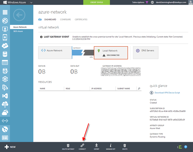 This post assumes you have created a Virtual Network in Azure and you have your first DC already provisioned in Azure. If you haven’t done that yet, you will want to go ahead and have a look at the first two posts on this topic.