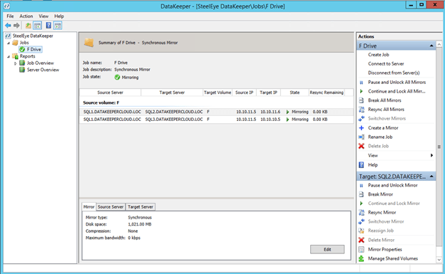Now click on “Create Job” and follow the steps illustrated below to create the mirror and DataKeeper Volume cluster resource.