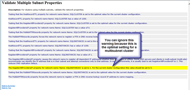Once the cluster create process completes, you will notice that the cluster name resource fails to come online, this is expected.