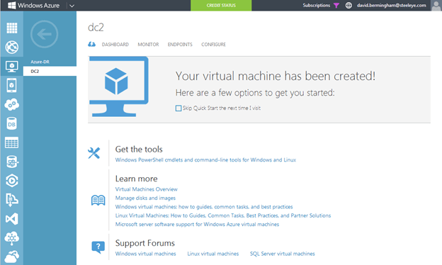 In part 1 of my series on using Windows Azure as a disaster recovery site, I explained how to create a site-to-site VPN using Windows Server 2012 R2 Routing and Remote Access (RRAS). Now that the two sites are connected, I’m going to walk you through the steps required deploy your first VM in the Windows Azure IaaS Cloud and add it to your on-premise network as a Domain Controller. I will assume you have already done the following: