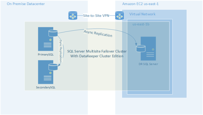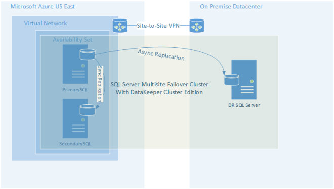 The illustrations shown above make use of the host based replication solution called DataKeeper Cluster Edition to build multisite SQL Server clusters. However, DataKeeper can be used to keep any data in sync, either between different cloud providers or in the hybrid cloud model.