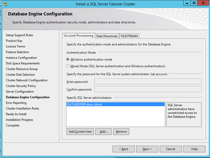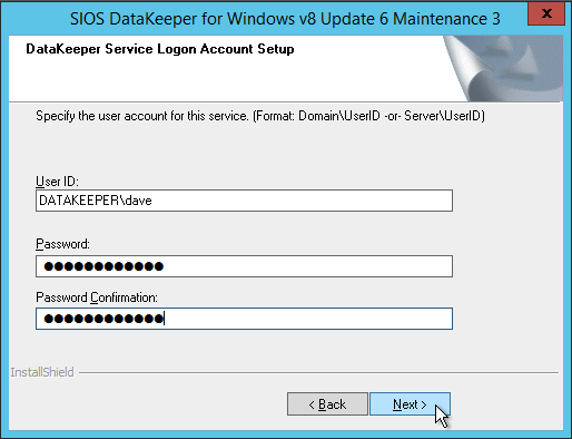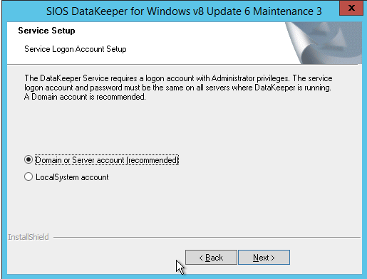 When you install DataKeeper it will ask you to provide a service account. You must create a domain user account and then add that user account to the Local Administrators Group on each node. When asked during the DataKeeper installation, specify that account as the DataKeeper service account. Note – Don’t install DataKeeper just yet!