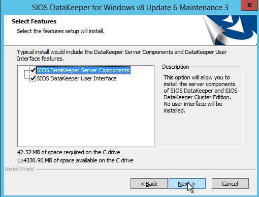 It is important to wait until the basic cluster is created before we install DataKeeper since the DataKeeper installation registers the DataKeeper Volume Resource type in failover clustering. If you jumped the gun and installed DataKeeper already that is okay. Simply run the setup again and choose Repair Installation.