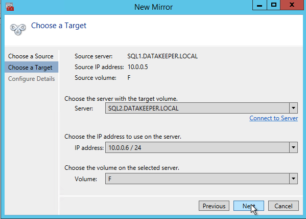 Once DataKeeper is installed on each node you are ready to create your first DataKeeper Volume Resource. The first step is to open the DataKeeper UI and connect to each of the cluster nodes.