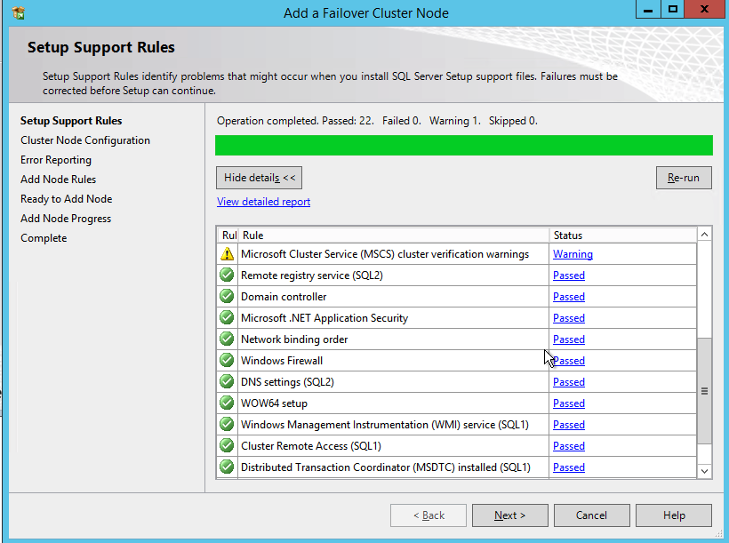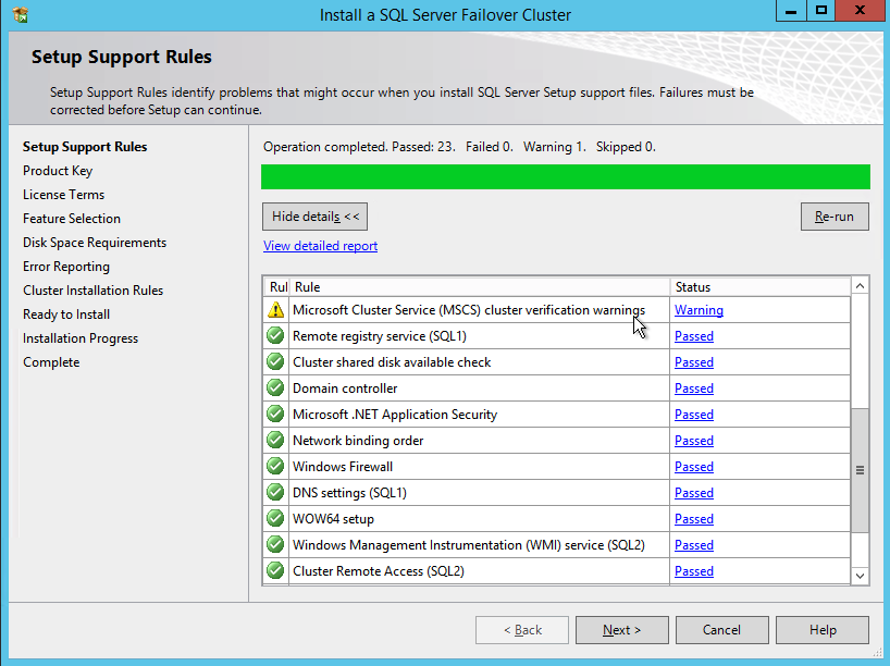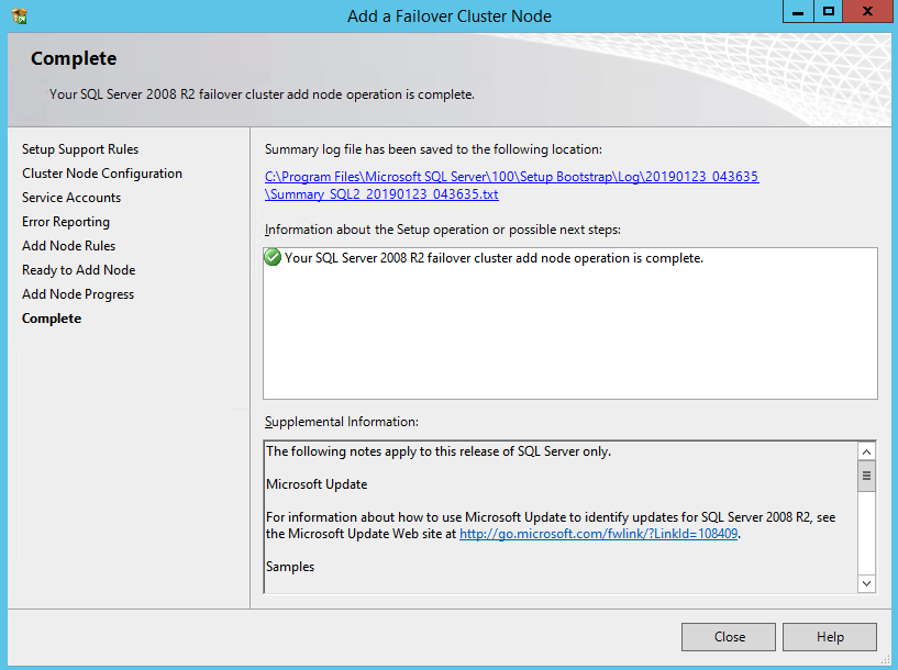 If everything goes well you are now ready to install SQL Server on the second node of the cluster.