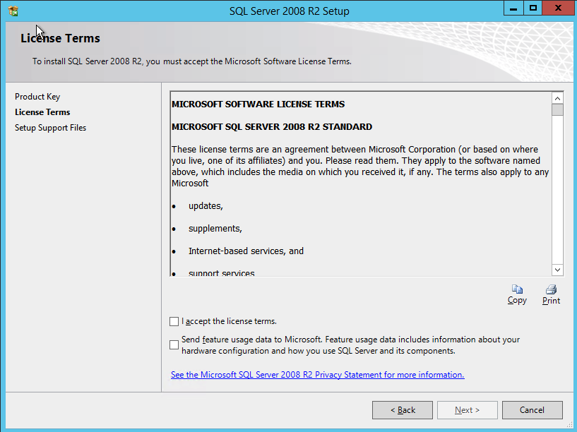 This guide uses SQL Server 2008 R2 with Windows Server 2012 R2. As of the time of this writing I did not see an Azure Marketplace image of SQL 2008 R2 on Windows Server 2012 R2, so I had to download and install SQL 2008 R2 manually. Personally I prefer this combination, but if you need to use Windows Server 2008 R2 or Windows 212 that is fine. If you use Windows Server 2008 R2 don’t forget to install the kb3125574 Convenience Rollup Update for Windows Server 2008 R2 SP1. Or if you are stuck with Server 2012 (not R2) you need the Hotfix in kb2854082.