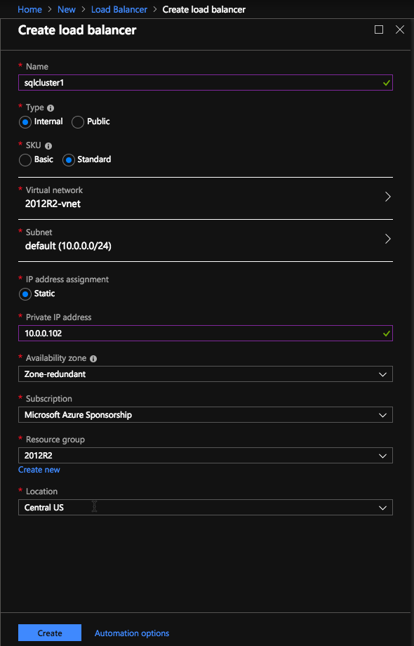 The steps below assume you have already created a SQL Server FCI in Azure and clustered the DTC resource. Reference the guides above for the details on those steps. The steps below really just detail the load balancer configuration required in Azure to make this work.