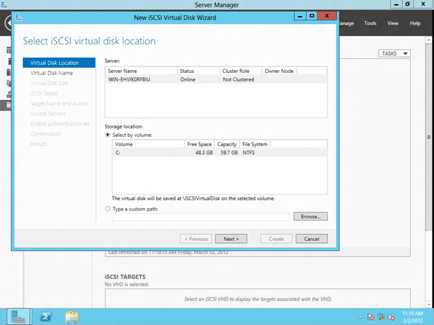 The rest of the options are up to you. Just make sure the VHD file is located on the replicated volume.